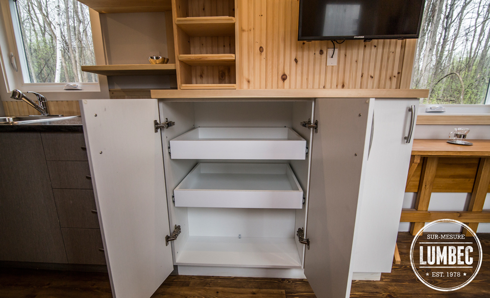 - La qualité des matériaux. La micro-maison est construite avec les même matériaux qu’une maison traditionnelle. En plus, l’utilisation fréquente de plusieurs essences de bois offre un cachet aussi durable que noble.